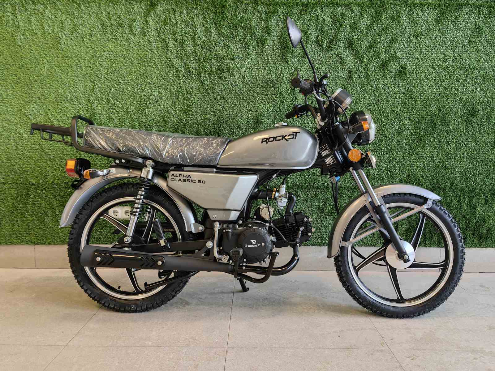 ROCKOT ALPHA CLASSIC — идеальный выбор для тех, кто ищет стильное и удобное транспортное средство для городской езды. Он оснащён одноцилиндровым 4-х тактным двигателем объёмом 49,5 см³ (в комплекте ЦПГ 120 cc), обеспечивающим мощность до 8 л.с. Мопед легко управляется благодаря трансмиссии с четырьмя передачами (1-N-2-3-4) и цепному приводному механизму, который гарантирует надёжность и плавность движения.